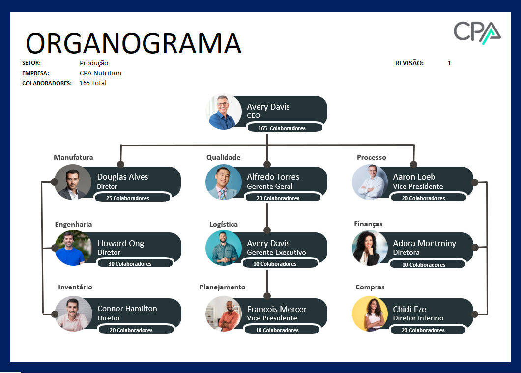 Organize a hieraquia da sua empresa ou setor, deixando claro as interações entre os colaboradores de maneira visual.